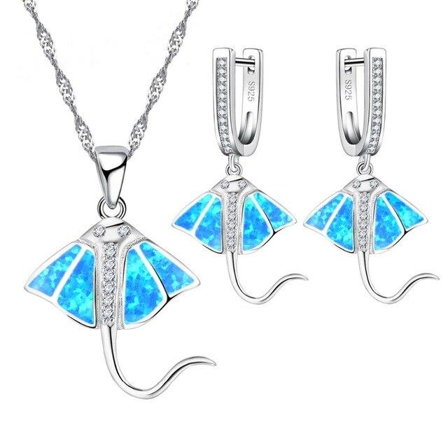 Conjunto Collar + Aretes Raya Marina en Ópalo y Plata